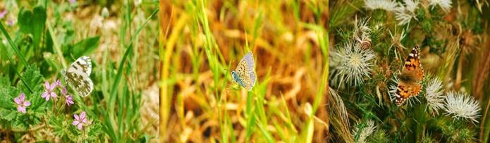| Butterflies are abundant in the spring. From left to right: Bath White, Common Blue and Painted Lady. |