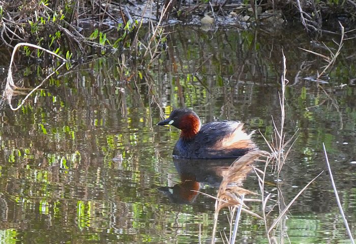 The wintering birds continued their stay, but some of them are already preparing themselves for the arrival of spring. The Little Grebes are now in full breeding plumage and continuously uttering their characteristic trilling call. The adult Common Coots have paired up and are showing signs of territorial behaviour. A male and a female Common Kingfisher have been regularly spotted and are possibly pairing up. Common Moorhens are also preparing for the breeding season, with some pairs already establishing their territory.